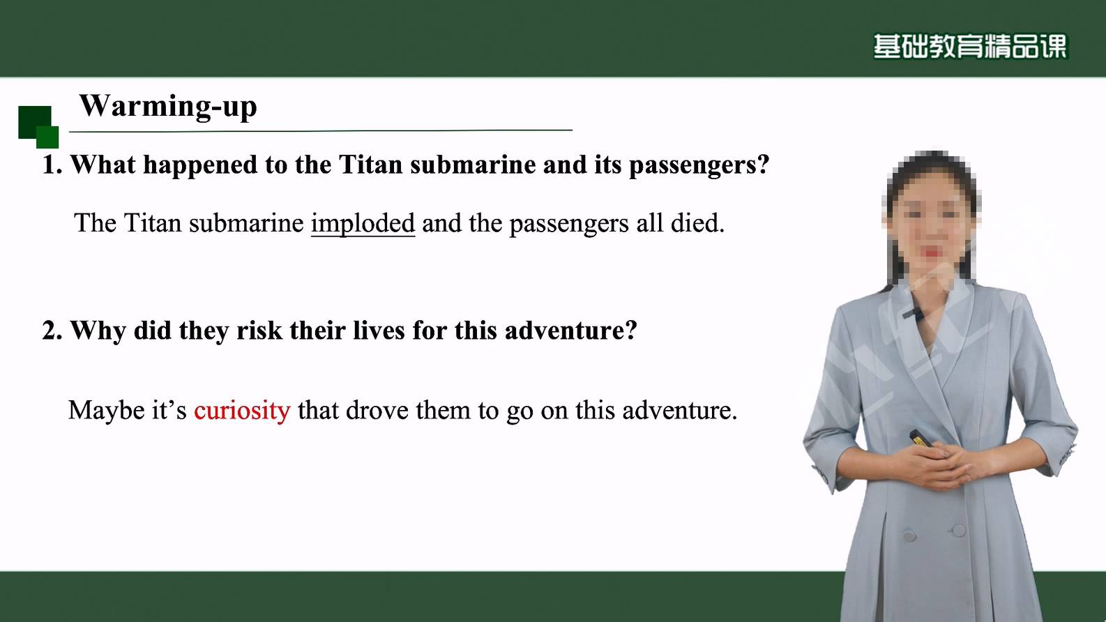 《Unit 5 What an adventure! Developing ideas: Twenty Thousand Leagues Under The Sea》是外研社2019年新课标版高中英语必修三教材中的一篇精彩课文,它不仅讲述了儒勒·凡尔纳笔下那段惊心动魄的海底探险故事,还巧妙地融入了英语语言学习的各项技能,是高一年级学生学习英语、拓展视野的重要篇章。陶瑞老师深知这篇课文的重要性,因此从课程设计之初便投入了大量的时间与精力,力求每一个教学环节都能精准对接学生的学习需求,激发学生的学习兴趣。她的课件设计新颖独特,内容丰富多彩,既有对原著情节的生动再现,也有对语言点的细致讲解,更有引导学生深入思考、发展创意表达的环节,每一页都凝聚着陶老师的心血与智慧,经过多次的反复推敲与打磨,最终呈现出近乎完美的状态。