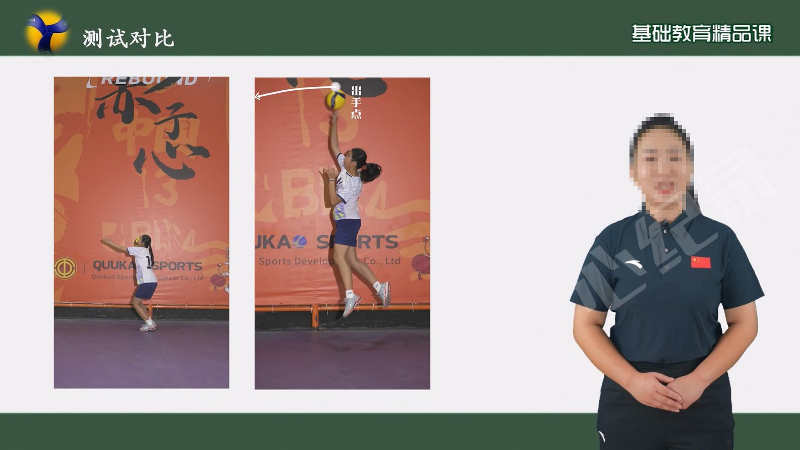 为了此次录制,徐老师做了大量的前期准备工作。她精心设计了课件,内容图文并茂,既直观又生动,充分展现了排球运动的魅力与技巧。课程围绕“筑基炼体,挥臂如风;技术赋能,备战攻锐;进阶扣技,实战应用;迁移运用,攻克实际”四个方面展开,层层递进,逐步深入,旨在让学生们从基础动作做起,逐步掌握并提升排球正面屈体扣球的技术水平。